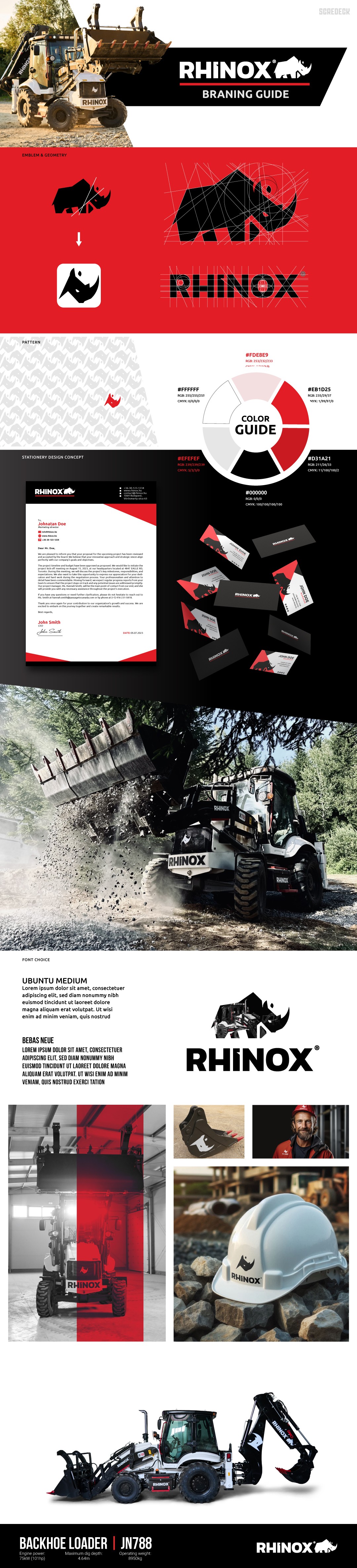 A Rhinox nagy teljesítményű munkagépek márkája, amely extrém körülményekre és folyamatos terhelésre készült. A feladat egy olyan logó és arculat tervezése volt, amely vizuálisan is tükrözi ezt az erőt, megbízhatóságot és tartósságot. Az eredmény egy határozott és könnyen felismerhető céges arculat lett.